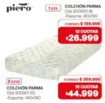 Esta Piero colchon parma está disponible en las sucursales siguientes según la ubicación que has configurado:
