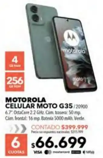 Podés encontrar el precio de Motorola celular moto G35 en la parte superior de la página, donde también están las fechas en las que la oferta estará disponible. También podés mirar el precio en el Catálogo Nexon actualizado o en el sitio web de Nexon. Las ofertas y promociones son la mejor forma de asegurarte de que estás comprando los productos de Nexon al precio más bajo del mercado.