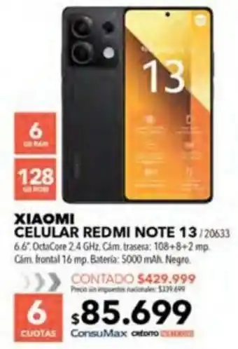 Xiaomi celular redmi note 13 con descuento en Nexon
