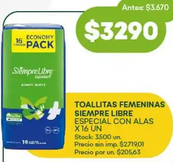 Siempre libre toallitas femeninas especial con alas en promoción en Super MAMI