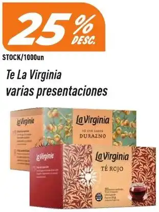 Esta oferta está disponible en varias tiendas y podés ver todos los productos para revisar dónde LaVirginia té varias presentaciones está a menor precio. Si querés averiguar si este producto tiene un descuento mayor en alguna otra tienda, mirá la categoría 'Supermercados'. Estas otras ofertas también podrían llamarte la atención: Knorr salsa varias presentaciones, Mani Maniking varias presentaciones y Alicante condimento varias presentaciones.
