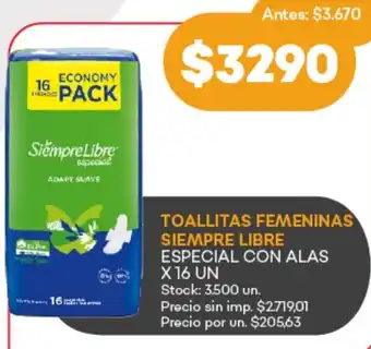 Siempre libre toallitas femeninas especial con alas en oferta y promociones online de Supermercados Tadicor
