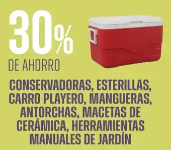 Conservadoras, esterillas, carro playero, mangueras, antorchas, macetas de cerámica, herramientas manuales de jardín en promoción en Supermercados Vea