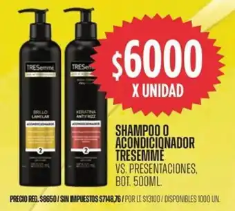 Tresemmé shampoo o acondicionador vs. presentaciones, bot. 500 ml