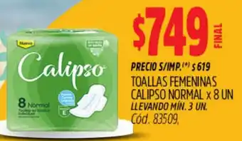 Calipso toallas femeninas normal en promoción en Supermercados Yaguar