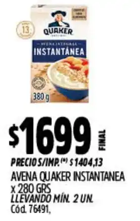 Quaker avena instantanea en oferta y promociones online de Supermercados Yaguar