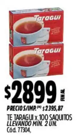 Esta oferta está disponible en varias tiendas y podés ver todos los productos para revisar dónde Taragui té está a menor precio. Si querés averiguar si este producto tiene un descuento mayor en alguna otra tienda, mirá la categoría 'Mayorista'. Estas otras ofertas también podrían llamarte la atención: Taragüí té diamantado, Taragui te en saquitos diamantado y Taragui mate cocido saquito diamantado.
